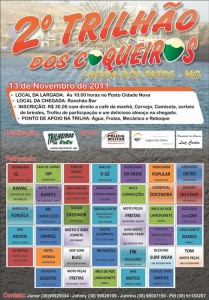 Informações adicionais: A inscrição dá direito a uma camiseta, troféu, café da manhã, almoço, sorteio de brindes e cerveja. Ainda terá ponto de apoio no meio da trilha com frutas, água, mecânico e reboque, não percam esse evento.
